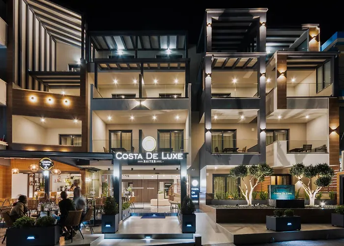Costa De Luxe Suites Leptokaryá hotel met 17 kamers bevindt zich op rijafstand van 10 minuten vanaf het Strand van Skotina en op maar 1 km van het Museum van de Geologische Geschiedenis van Olympus en heeft een archeologisch museum. Bij dit 4-sterrenhotel met uitzicht op de zee wordt voor gasten dagelijks een buffet ontbijt geserveerd.
